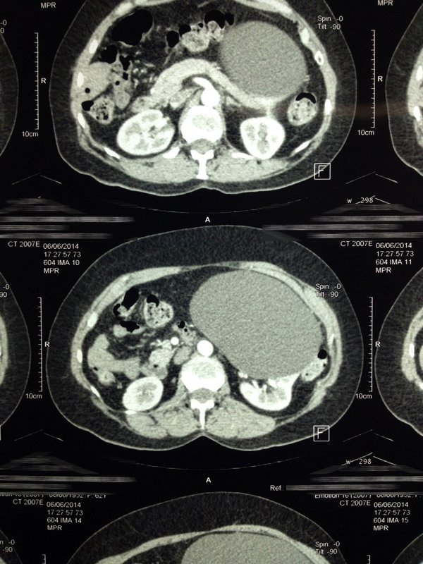 Caso de quiste renal izquierdo operado x laparoscopia en-el hospital-general de Durango. Heridas de 5mm y recuperacion rapida 2
